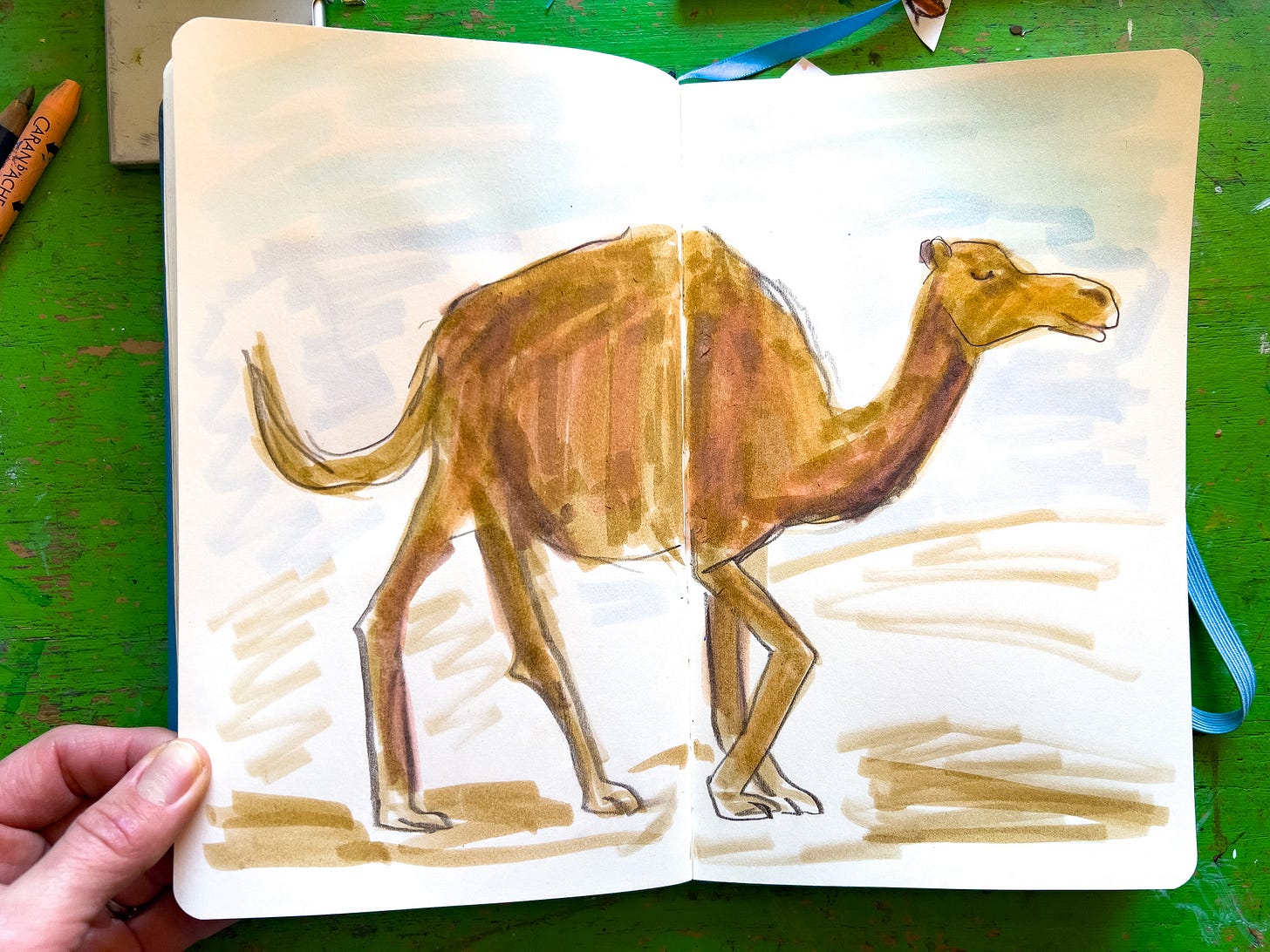 , I learned I love drawing camels and layering markers. PLUS the value of a pre-drawing body scan!Drawing Goats with