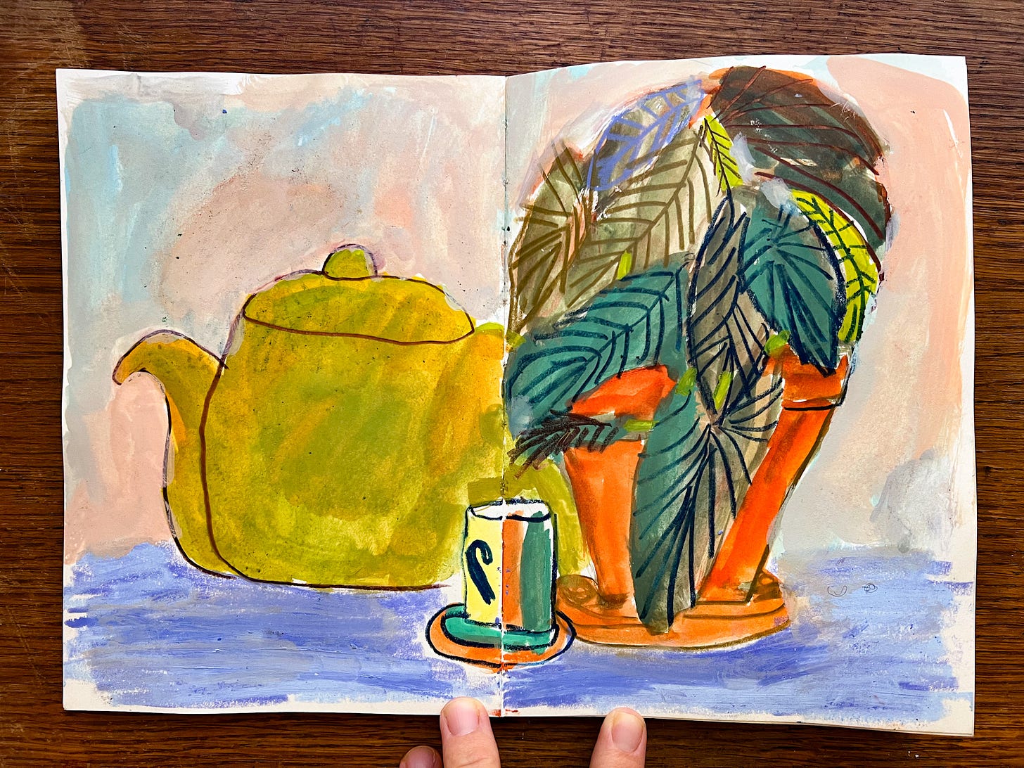 ’s wonderful Co-Swatch sesh, she encouraged me to embrace this challenge by taking only softer colors on location to draw.The more art I make with quieter colors, the more I love them, but old habits die hard. I still find myself grabbing greens and and adding gobs of yellow to brighten everything.