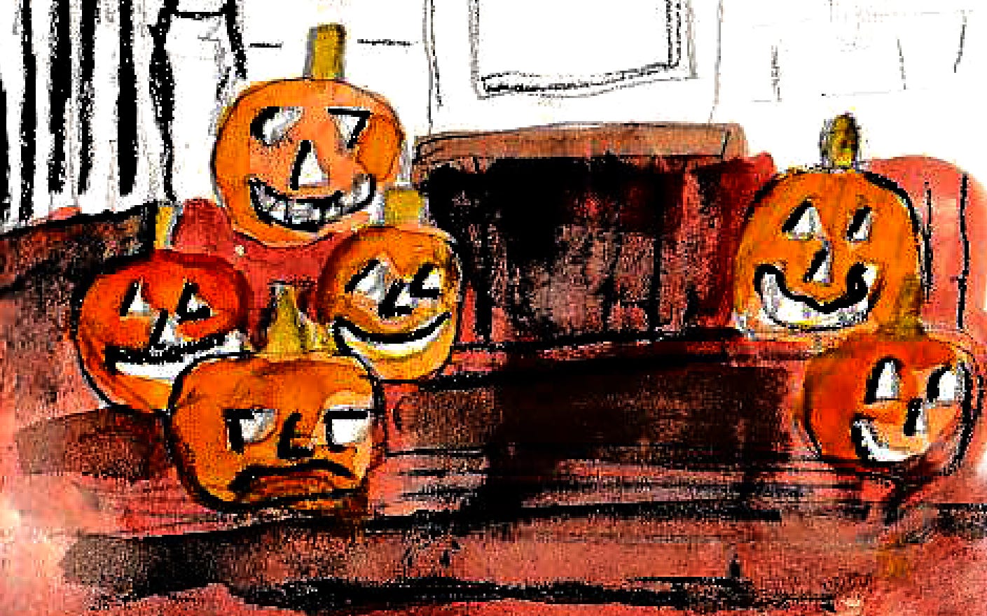 Using only red, yellow, and black paint1 (and a pencil), I made a little series of drawings at the Atlanta Botanical Gardens.