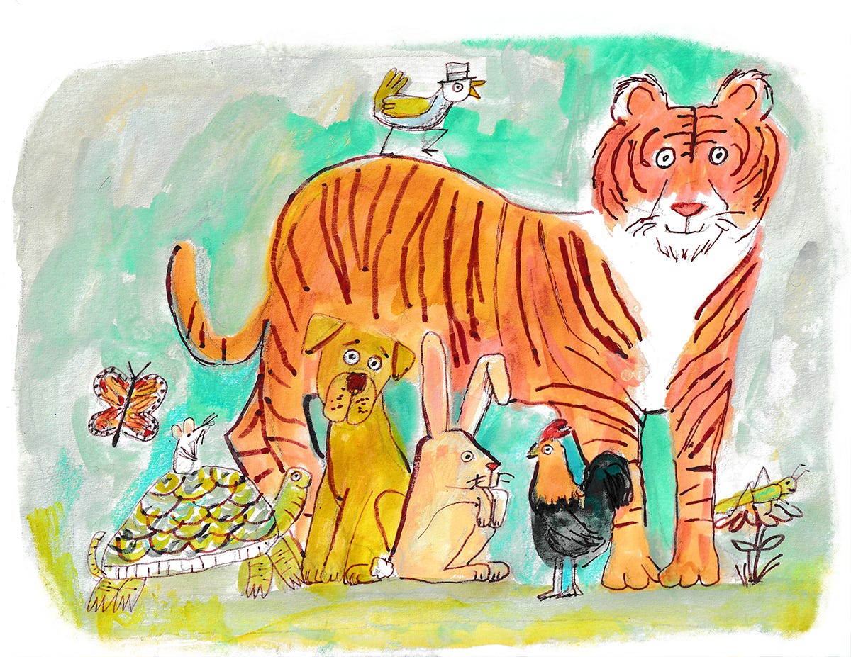 It’s a timelapse of me drawing the animals below, set to the songs of a lovely barbershop quartet.