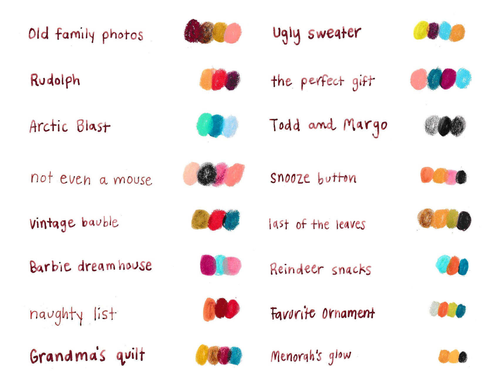 I made some lovely color palettes to help you spend quality time with your beloved art supplies during this busy season.