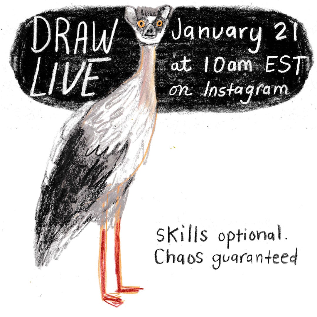 Join Beth Spencer & TJ Marston LIVE on Instagram at 10 am EST — we’ll draw animals from a French zoo… badly, hilariously, together.
