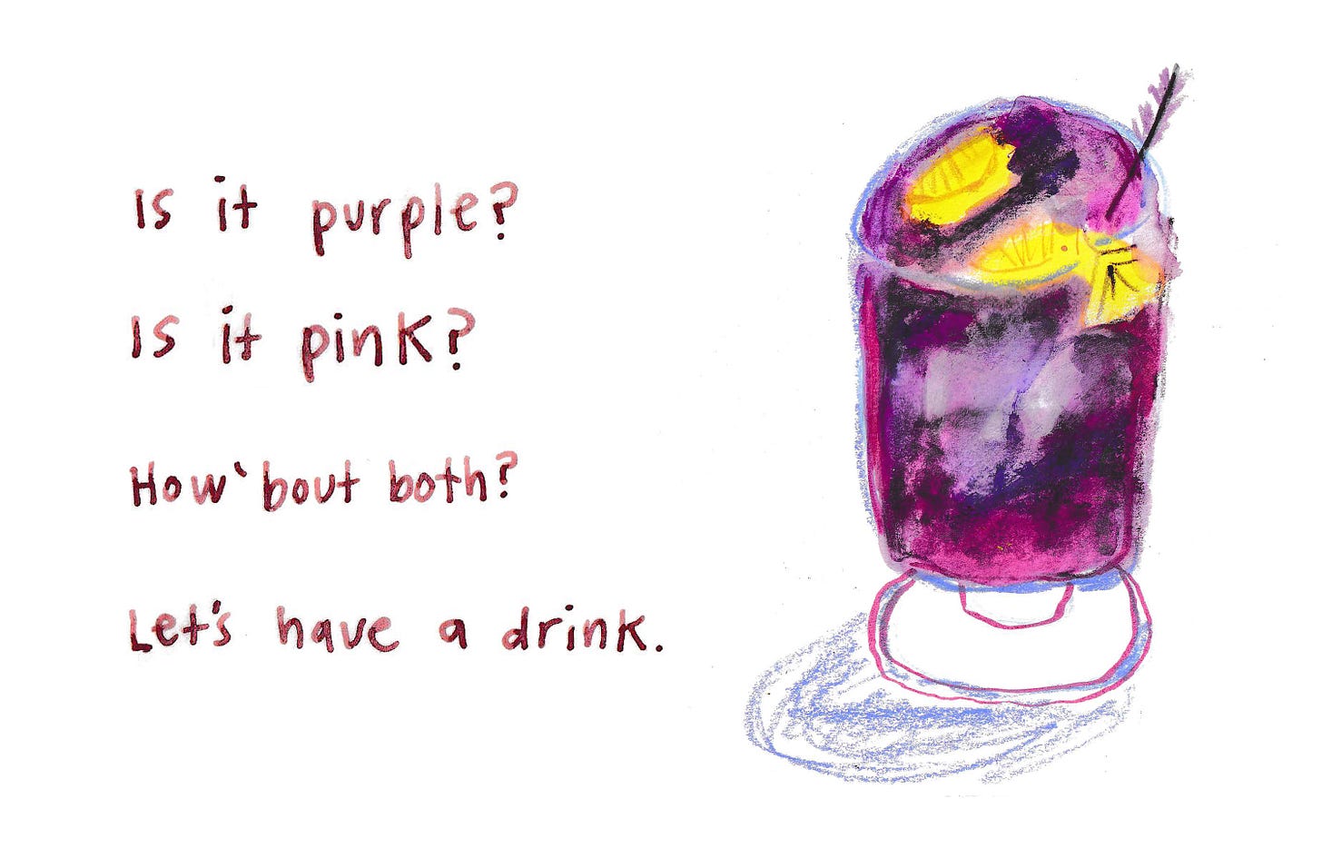 A quick break with a mauve Tombow marker (817) and gouache while running errands: