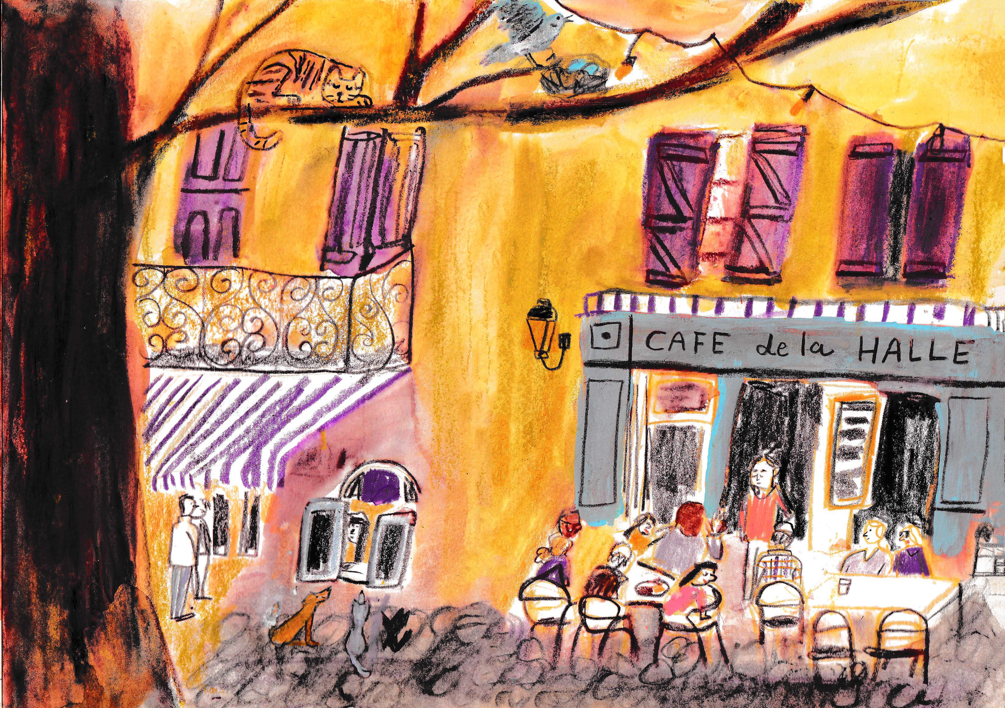 I used a mauve Neocolor ii for the shutters in this drawing I made from Google Maps. You can watch the whole process for this one at the end of the video, along with all my favorite materials to use with mauve!